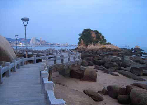 里面有一门是中国最大的海炮。出景点左边走出去,下面就是据说厦门沿海漂亮的一段木栈桥路,这边有双人自行车出租,可以骑到曾厝按来回。厦大白城到曾厝按是厦门最漂亮的一段海边风景线。