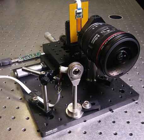 近日,美国加利福尼亚大学的工程师们开发出一个光纤连接的单中心镜头照相机。参与开发的研究者称这款特别的微型广角镜头的大小只有普通传统镜头的十分之一,如上图所示,与其对比的是佳能EF 8-15mm f/4L,足以看出新研发出的镜头尺寸之小巧。
